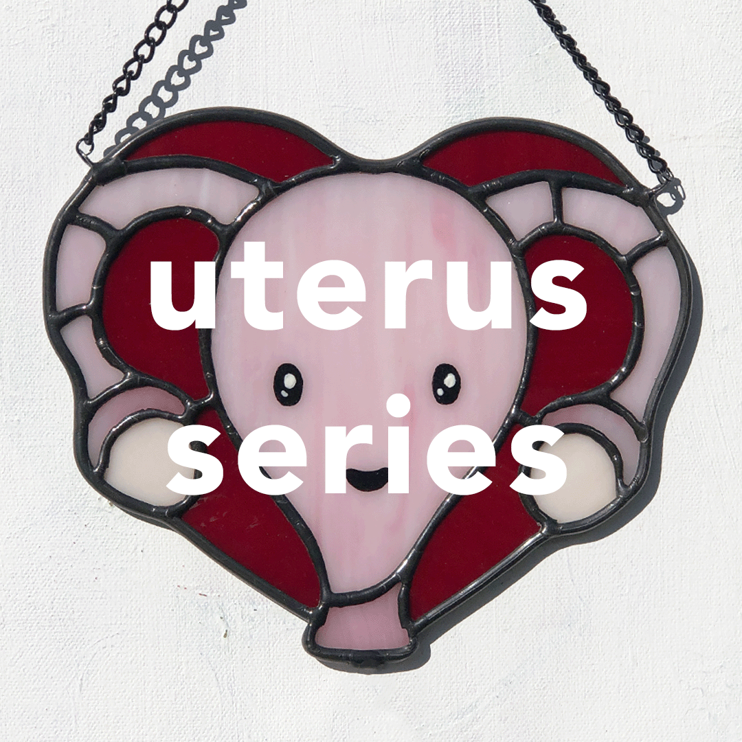 Feel totally cuterus when you're dripping with uterus goodies. Stained glass sun-catchers, clothing, throw blankets and more.